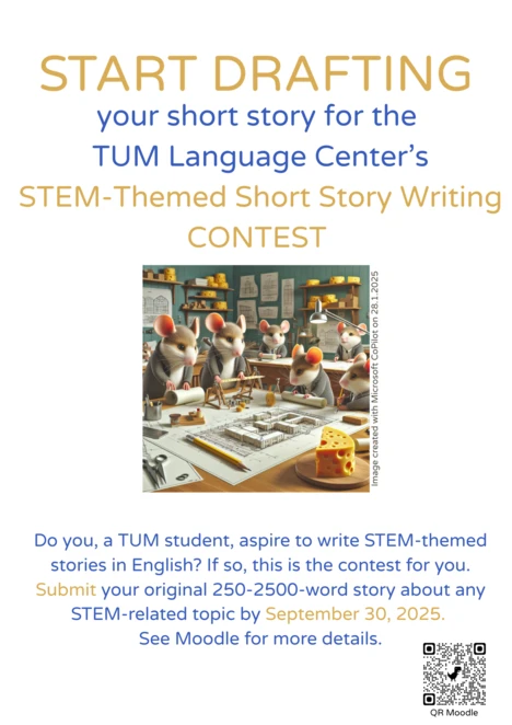 Du studierst an der TUM und hast Lust, eine eigene Geschichte auf Englisch zu schreiben, mit einem Bezug zu STEM (Science, Technology, Engineering, Mathematics)? Dann mach mit!